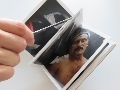 Designed by Teun van der Heijden, Chiho Bangert and Klaus Kehrer, the book is also a collector's item: The small format, open spine binding, rough cover material and typewriter font are reminiscent of a handmade, personal journal. Some of the pages are not cut apart, but have a perforation which can easily be ripped open. This way the reader can decide just how much he wants to see, how much he can take. Spreads between these "hidden" images, naturally, are open to view.